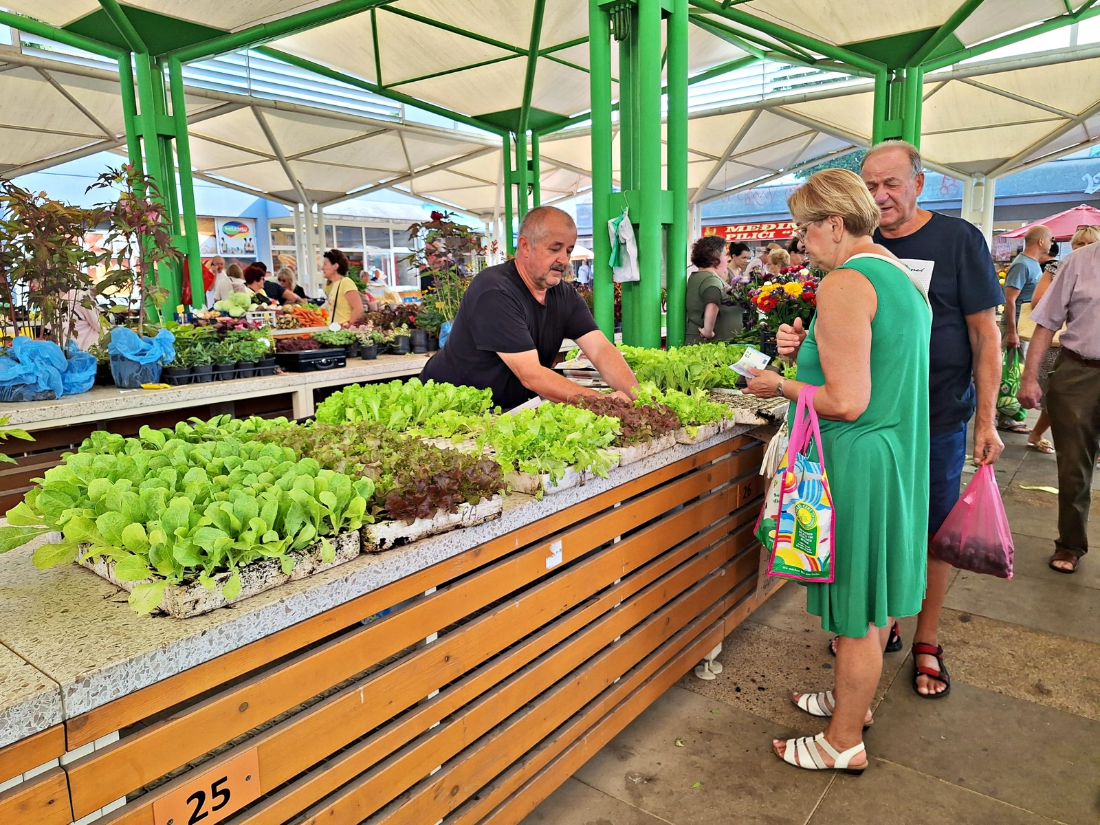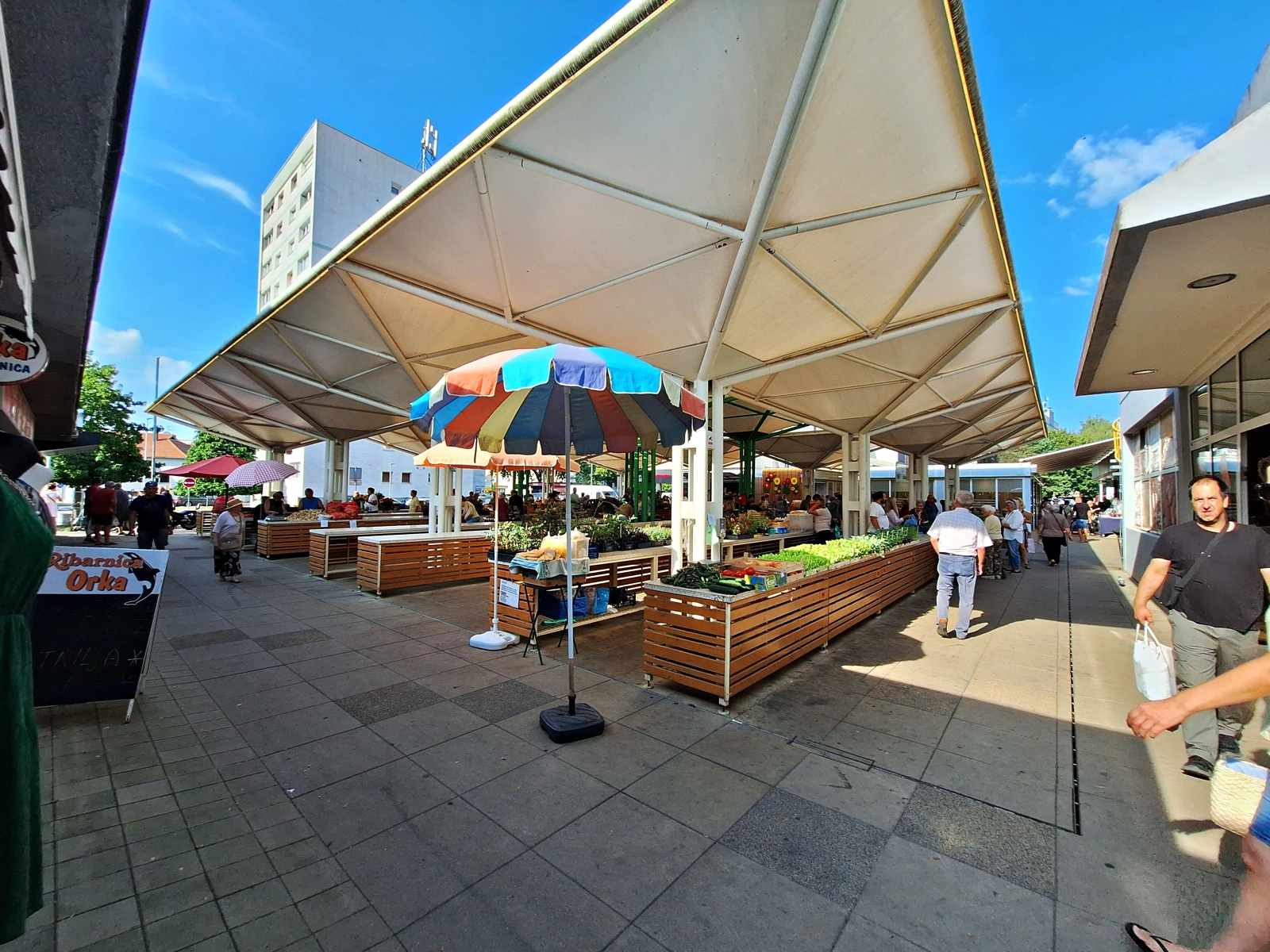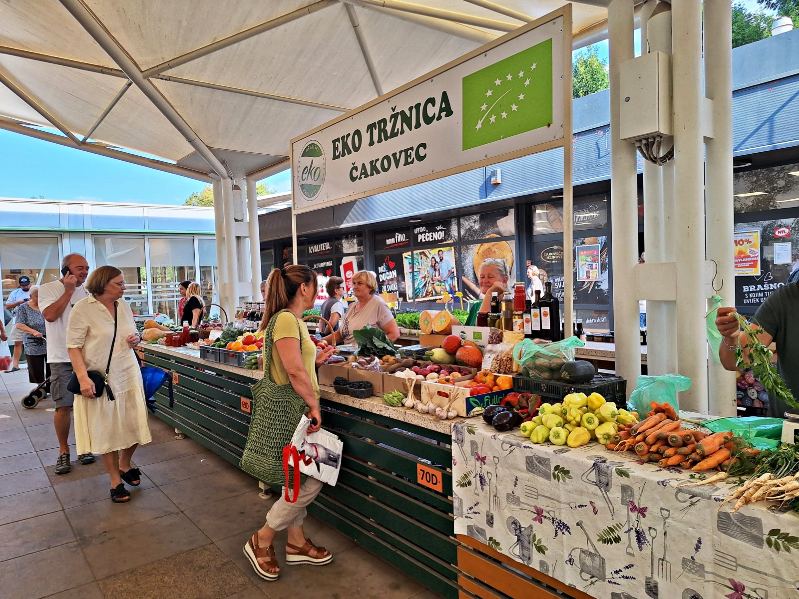 Na tržnici je smješteno 7 kioska za prodaju kruha, mesnih prerađevina, jaja, mliječnih proizvoda i kolača. Korisnici tržnog prostora su poljoprivredni proizvođači, trgovci iz Međimurja, Varaždina i Podravine koji ovdje plasiraju svoje proizvode tako da je tržnica snabdjevena sezonskim voćem, povrćem, cvijećem, sadnicama, domaćom tjesteninom, kao i uvoznim voćem i povrćem. U blizini tržnice nalazi se pekara, velika samoposluga, ribarnice, mesnice, tako da ovaj kompleks omogućuje potpunu opskrbu potrošača svježim proizvodima domaćih proizvođača.