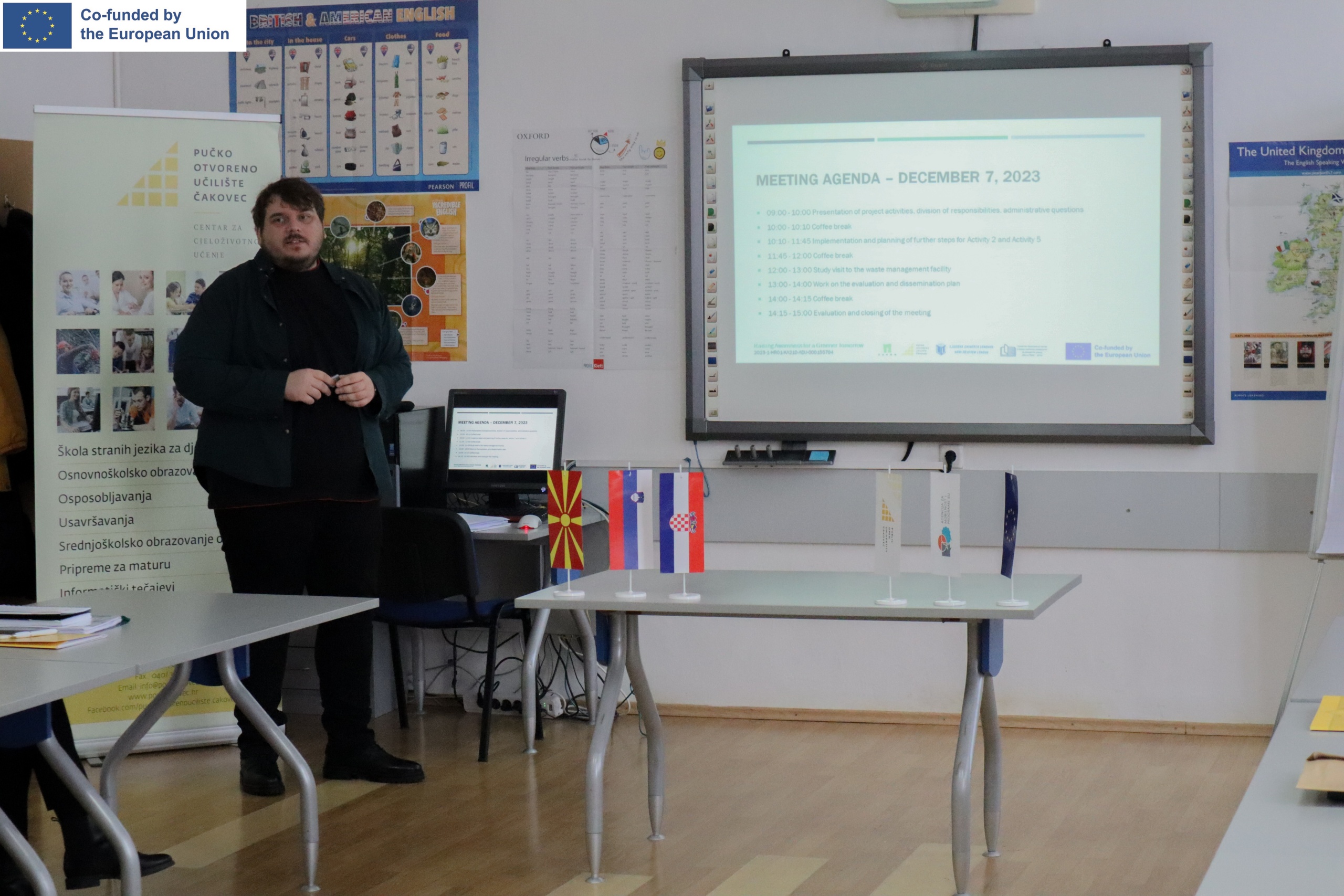 Prošloga tjedna, 06. i 07. prosinca 2023.g., održan je prvi transnacionalni sastanak partnera na projektu „Raising Awareness for a Greener Tomorrow“ 2023-1-HR01-KA210-ADU-000155794. Domaćin sastanka bilo je Pučko otvoreno učilište Čakovec. Na sastanku su sudjelovali predstavnici partnerskih organizacija iz triju zemalja: predstavnici iz Hrvatske – GKP ČAKOM d.o.o. (nositelj projekta) i Pučko otvoreno učilište Čakovec (partner), predstavnici iz Slovenije – Ljudska univerza Lendava (partner) te predstavnici iz Sjeverne Makedonije – Cjeloživotno učilište Vanco Prke (partner).